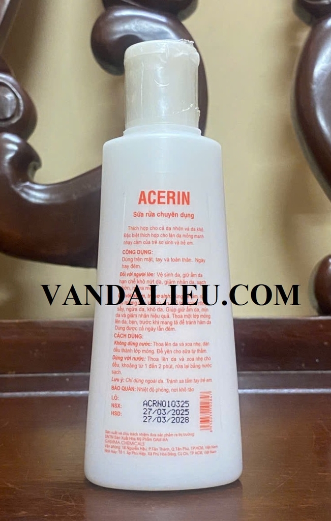 Công dụng: Acerin có công dụng theo nhà sản xuất là vệ sinh da, giữ ẩm da, hạn chế sự khô, nứt nẻ của da mặt. Ngoài ra, Acerin giúp giảm nhờn, ngừa mụn hiệu quả. Đối với trẻ em, Acerin giúp phòng ngừa sảy, ngứa, khô da.