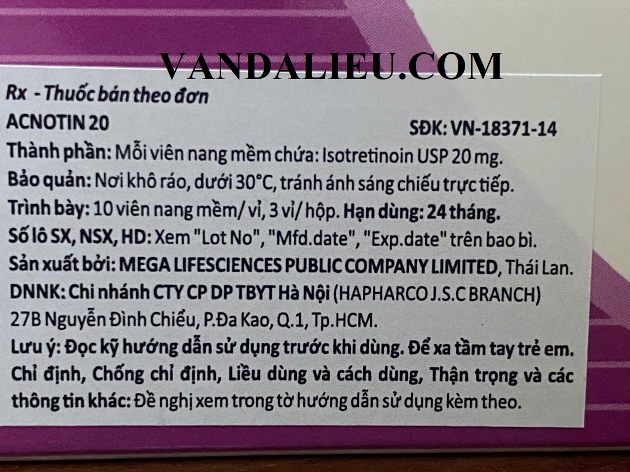 Không sử dụng với vit A, minocyclin, tetracyclin & rượu. Ngưng sử dụng thuốc bôi trị mụn khác trước khi uống Isotretinoin.