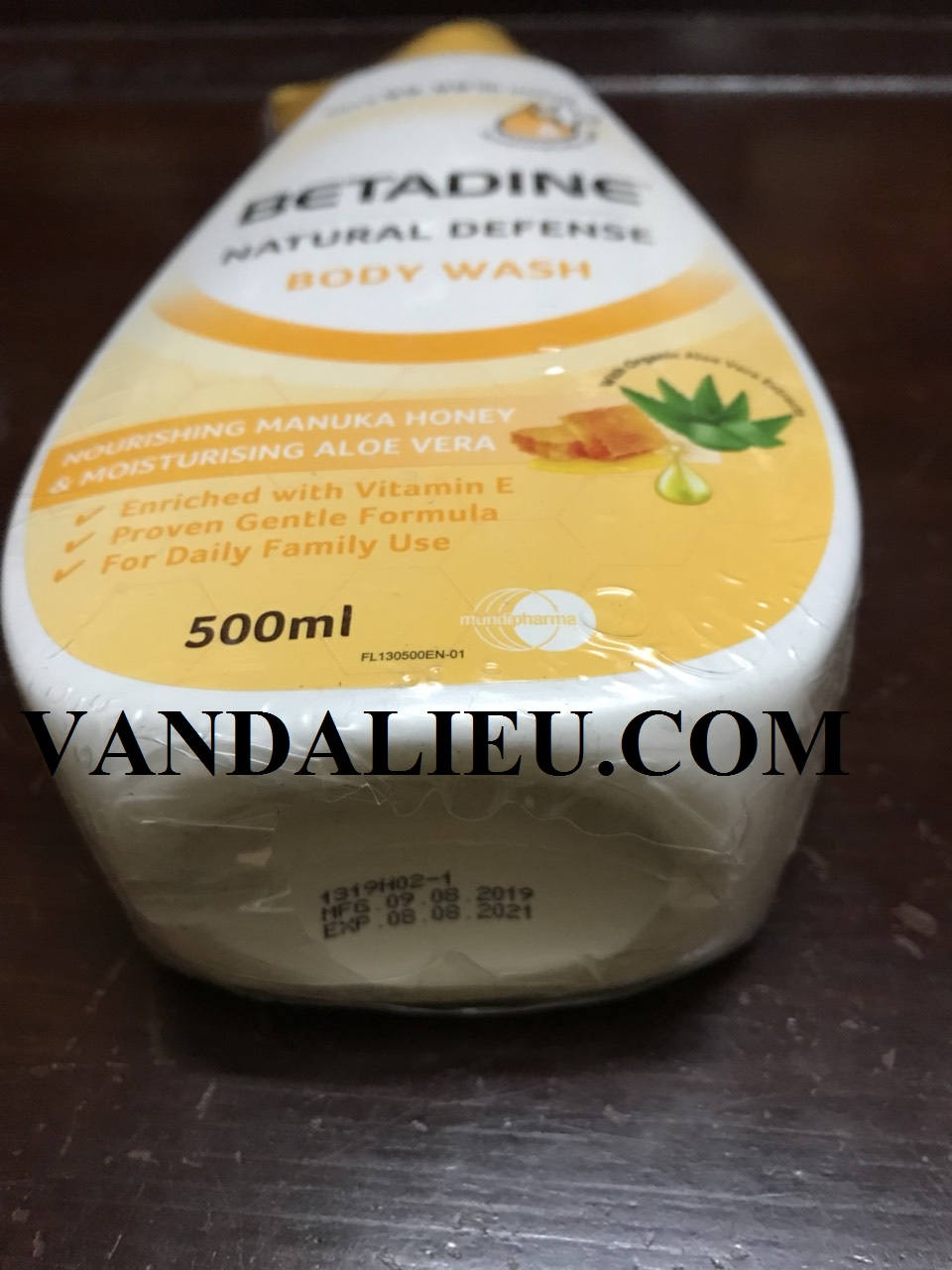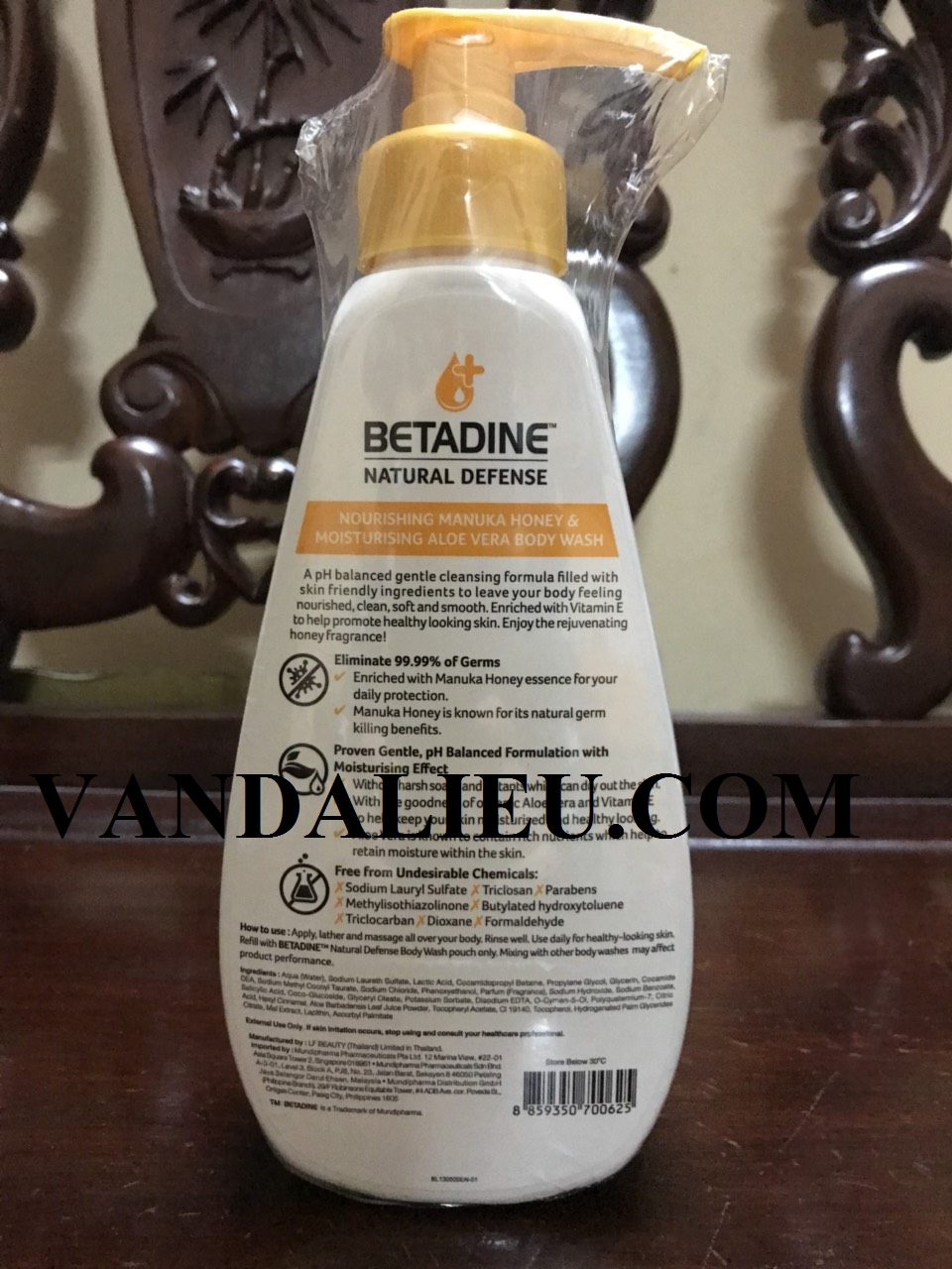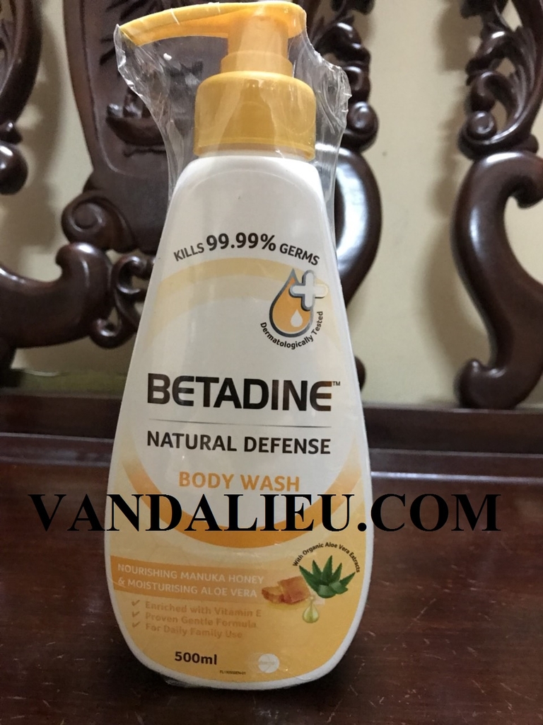 Sữa tắm kháng khuẩn tự nhiên Betadine với mật ong Manuka và chiết suất lô hội dưỡng ẩm.