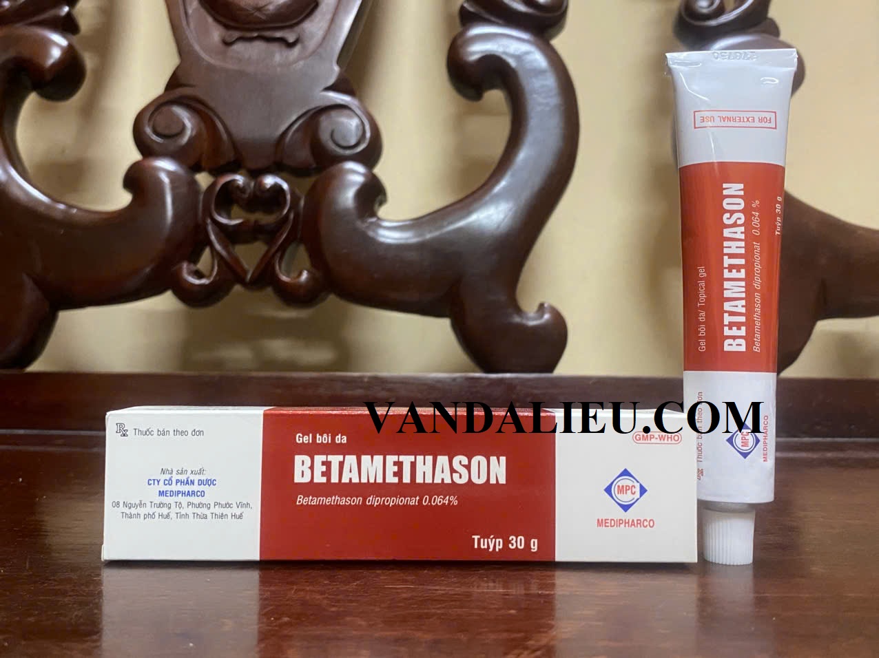 Thành phần: Betamethasone Hàm lượng: 30g Chỉ định: Làm giảm các biểu hiện viêm trong các bệnh da đáp ứng với corticosteroid. Chống chỉ định: Tương tác: Tác dụng phụ: Cảm giác bỏng, ngứa, kích thích da, khô da, viêm nang lông, rậm lông, phát ban dạng mụn trứng cá, giảm sắc tố da, viêm da quanh miệng, viêm da tiếp xúc do dị ứng, tróc da, nhiễm trùng thứ phát, teo da, rạn da & bệnh mụn kê ngoài da. Thận trọng: Ngưng thuốc nếu có biểu hiện mẫn cảm hoặc kích thích da. Bảo quản: Liều lượng: Bôi thuốc 1-2 lần/ngày.