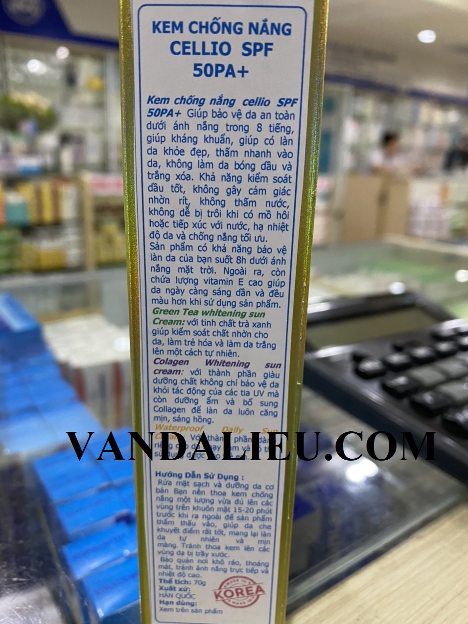 – Kem chống nắng Cellio SPF 50PA+ cung cấp giải pháp trắng da toàn diện cho da, chống lại tia cực tím UVB, ngăn chặn hình thành hắc tố melanin cho da, ngăn tia cực tím UVA xâm nhập làm sạm và lão hoá da