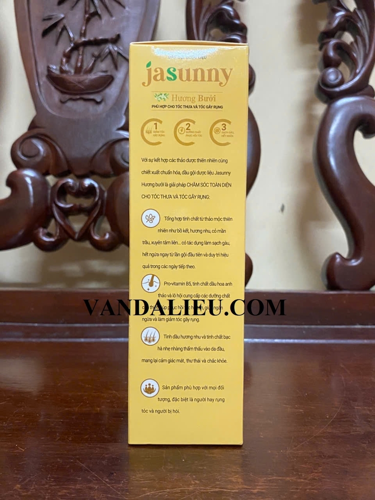 Công dụng: Dầu gội Dược liệu Jasunny hương bưởi có công dụng giúp hỗ trợ tái tạo và phục hồi tóc hư tổn, giúp làm sạch gàu, hết ngứa. Hỗ trợ giúp tóc suôn mượt tự nhiên, nuôi dưỡng tóc và da đầu.