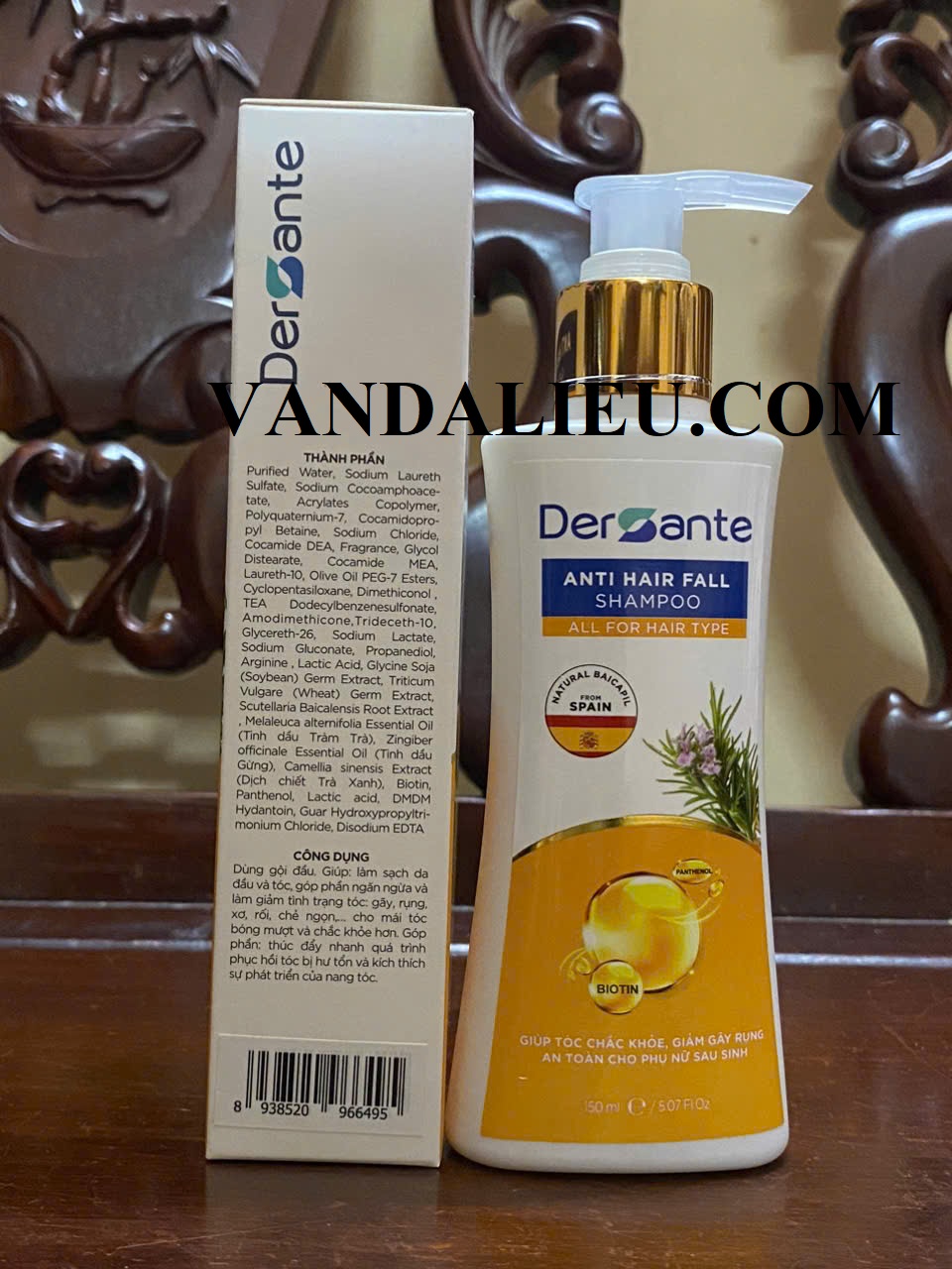 Dầu gội ngăn rụng tóc Dersante với thành phần Baicapil (nhập khẩu Tây Ban Nha) cùng Tinh dầu Trà, Tinh dầu gừng, dịch chiết trà xanh, Biotin, Panthenol đã được nghiên cứu đánh giá về hiệu quả trên lâm sàng, giúp kích thích nang tóc phát triển, tăng cường độ chắc khỏe của tóc từ gốc, giảm rụng tóc, tăng độ dày của tóc.