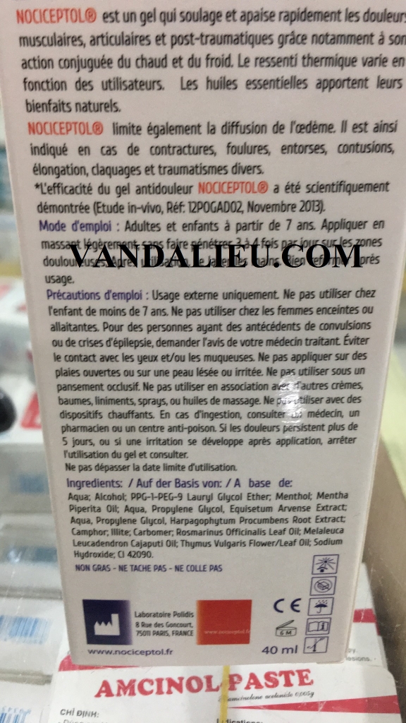 Nociceptol Gel của Pháp được bào chế dạng gel với các thành phần chính: