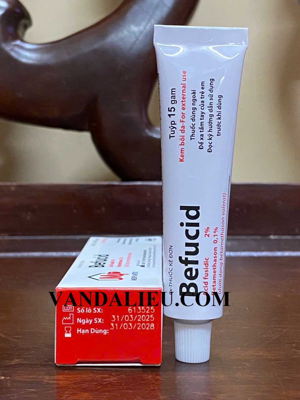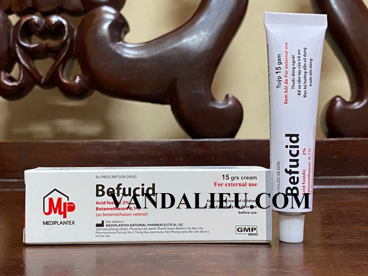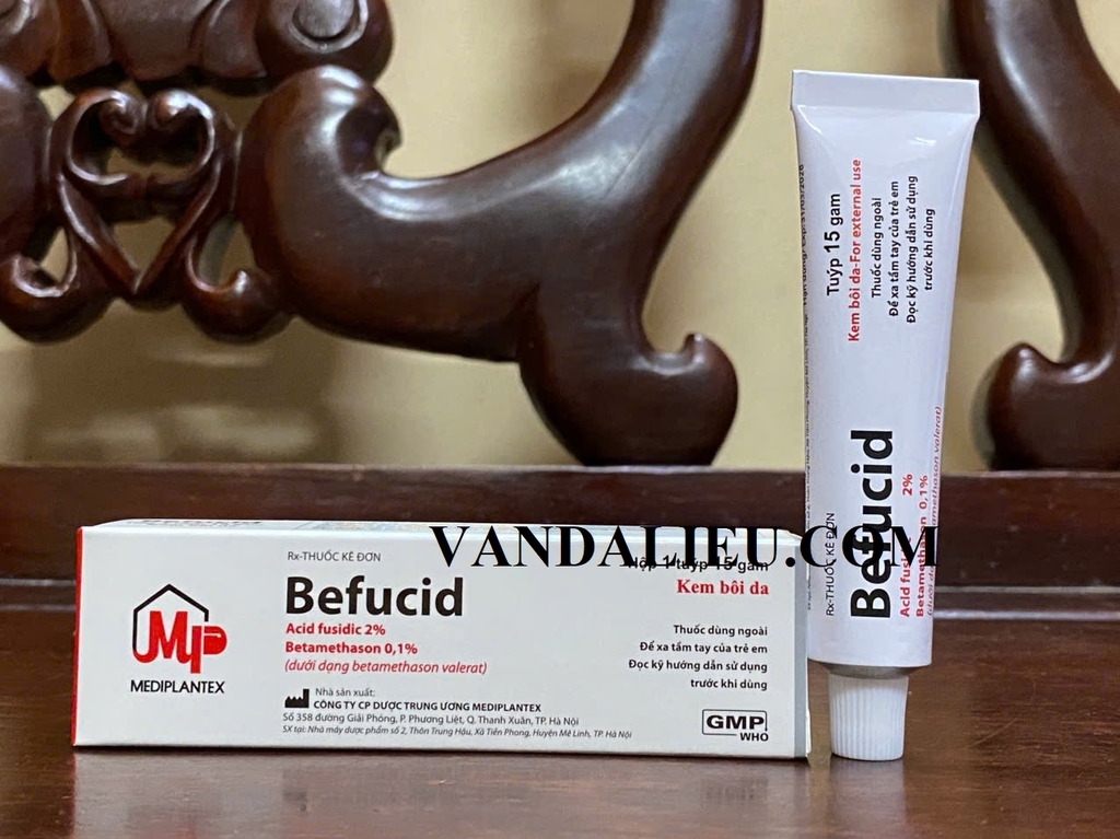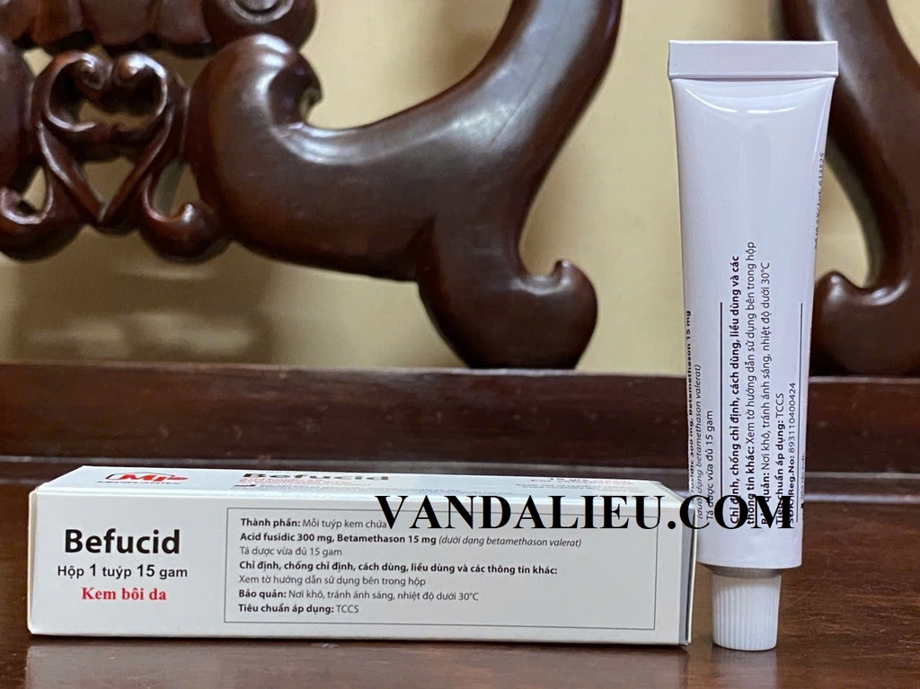 Thuốc Befucid thành phần Mỗi 15g kem chứa Acid fusidic 300mg; Betamethason (dưới dạng Betamethason valerat) 15 mg dưới dạng Kem bôi da