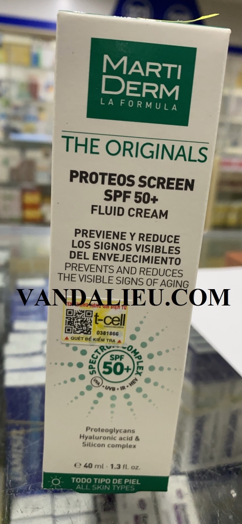 MartiDerm The Originals Proteos Screen SPF50+ Fluid Cream là kem chống nắng dạng lỏng dễ hấp thụ với chỉ số SPF 50+ giúp ngăn ngừa và sửa chữa các dấu hiệu lão hoá da sớm. Sản phẩm cung cấp màng lọc chống nắng phổ rộng chống lại các tia UVA, UVB, IR (hồng ngoại), HEV (ánh sáng xanh). Sự kết hợp của Proteoglycans, phức hợp Spectrum Complex, phức hợp Hyaluronic Acid & Silicon Complex giúp giữ cho làn da trẻ trung, tươi tắn và đều màu. Kết cấu dạng cream-to-powder độc đáo mang lại cảm giác mượt mà, mỏng nhẹ tựa "vô hình" trên da.