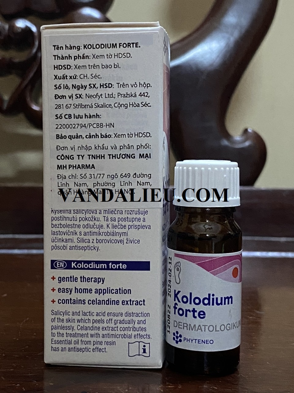 Sản phẩm y tế Kolodium forte là một dung dịch có chứa dược chất, được sử dụng để loại bỏ nhẹ nhàng mụn cóc, ngô, da cứng và chai.
