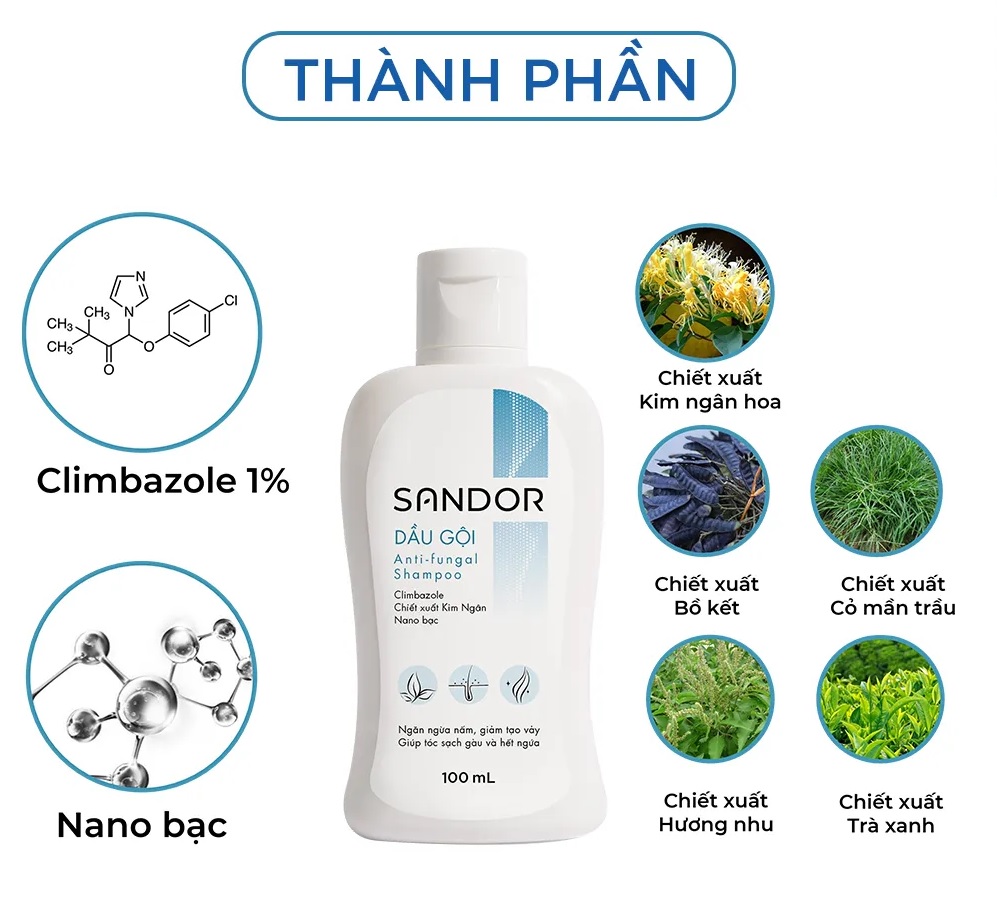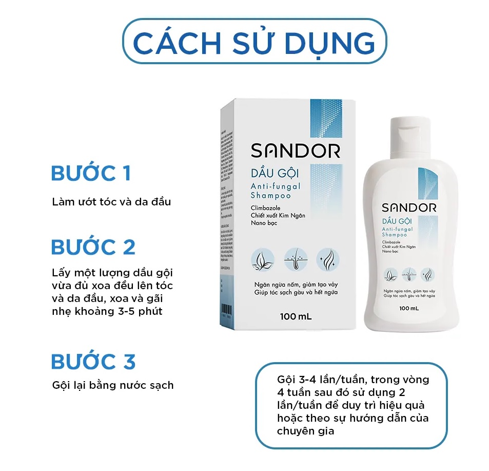 SANDOR ANTI FUNGAL SHAMPOO 100ML. DẦU GỘI GIÚP NGĂN NẤM, GIẢM GÀU, HẾT NGỨA