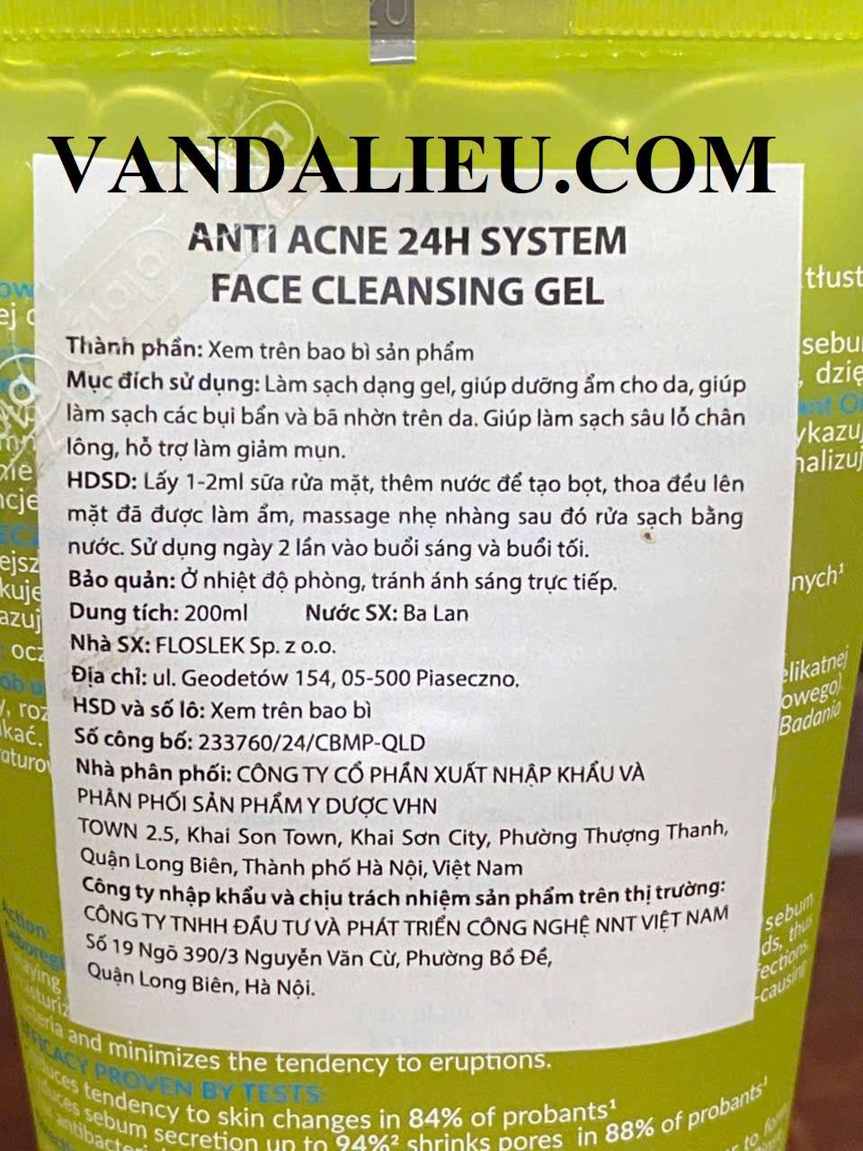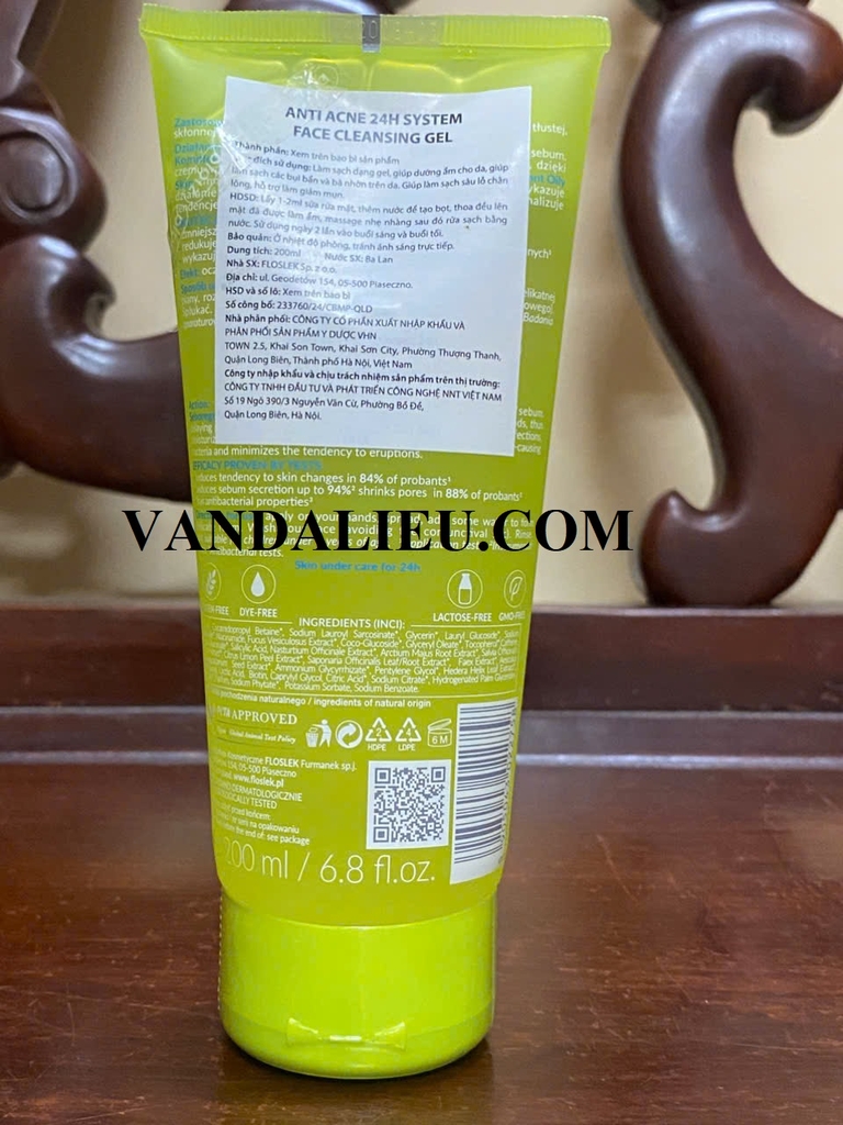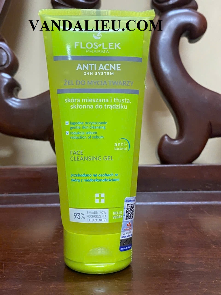 Sữa rửa mặt diệt khuẩn cho da nhờn mụn Floslek Anti Acne Bacterial Face Cleansing Gel 200ml thuộc dòng sản phẩm ngừa mụn Anti Acne của thương hiệu Floslek. Floslek Pharma Antibacterial Face Cleansing Gel chứa chiết xuất cải xoong, rễ ngưu bàng, lá cây xô thơm, cây vạn niên, cỏ bồ hòn, tảo gạc hươu và nhiều thành phần thiên nhiên khác giúp loại bỏ bụi bẩn, bã nhờn, làm giảm sự hình thành mụn đầu đen, hỗ trợ làn da bị mẩn đỏ, tổn thương do mụn, đồng thời giúp thư giãn và làm dịu những tổn thương trên da do mụn.