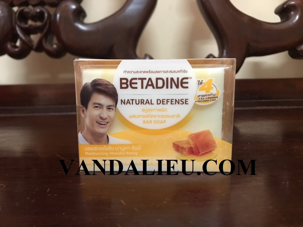 Xà phòng kháng khuẩn tự nhiên Betadine với mật ong Manuka và chiết suất lô hội dưỡng ẩm.