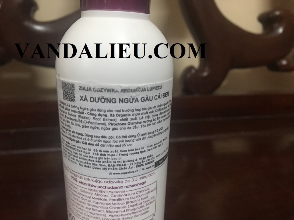 Aqua (Nước), Cetearyl Alcohol, Cetrimonium Chloride, Dimethicone, Isopropyl Myristate, Paraffinum Liquidum (Mineral Oil), Propylene Glycol, Raphanus Sativus (Radish) Root Extract, Panthenol, Simmondsia Chinensis (Jojoba) Seed Oil, Aloe Barbadensisure Leaf Extract -4 Phosphat, Natri Benzoat, 2-Bromo-2-Nitropropane-1,3-Diol, Parfum (Hương thơm), Alpha-Isomethyl Ionone, Butylphenyl Methylpropional, Benzyl Salicylate, Hexyl Cinnamal, Citronellol, Limonene, Benzyl Benzoate, Eugenol, Axit citric.